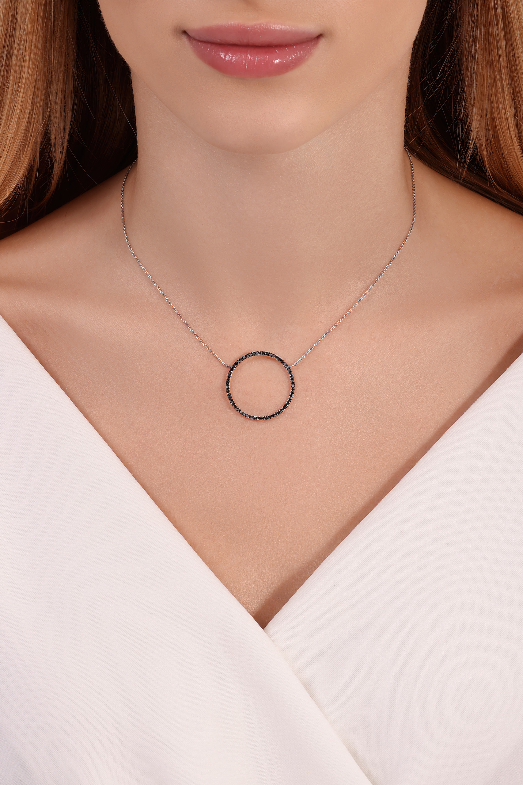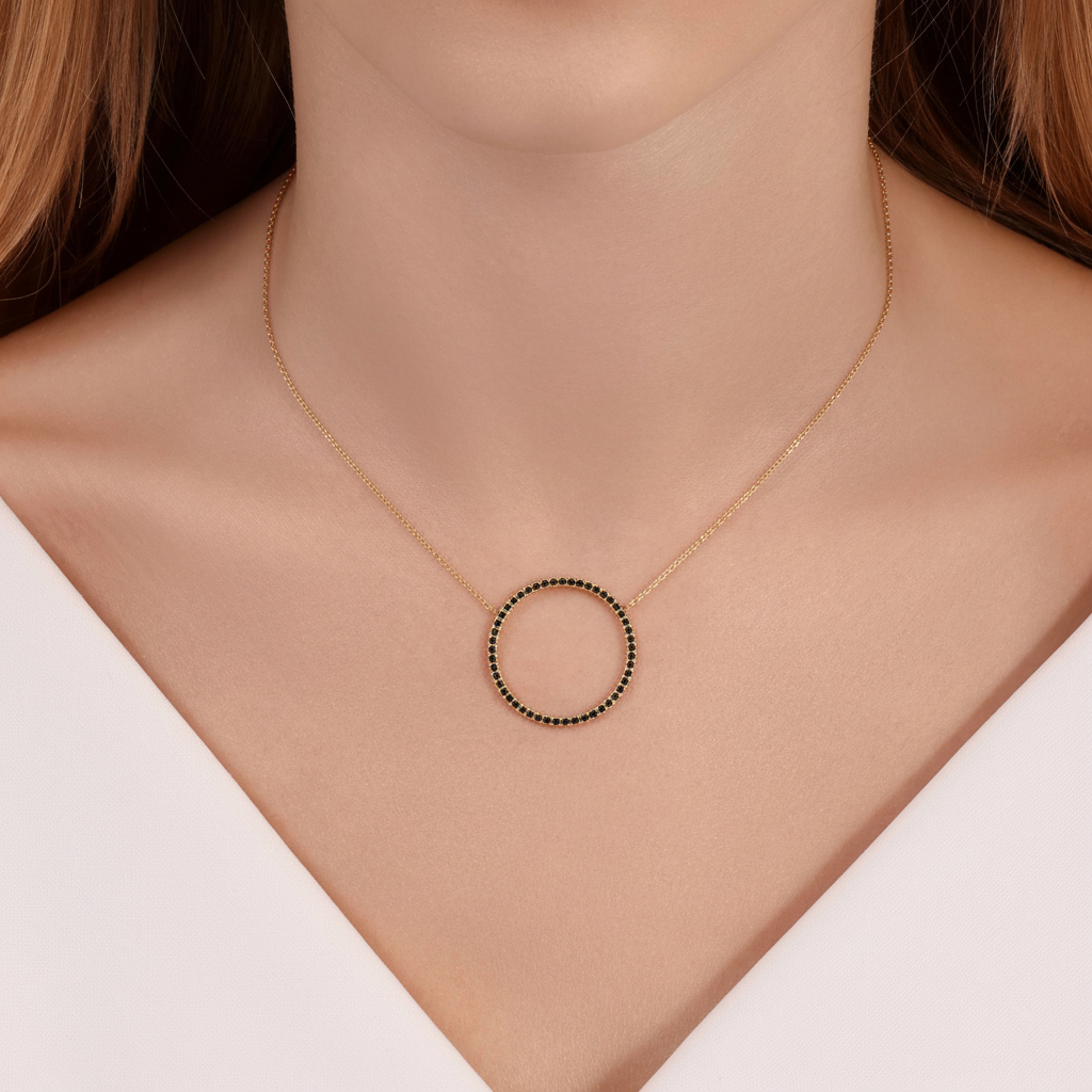 תליון עיגול עם יהלומים שחורים – 0.46 קראט 💎