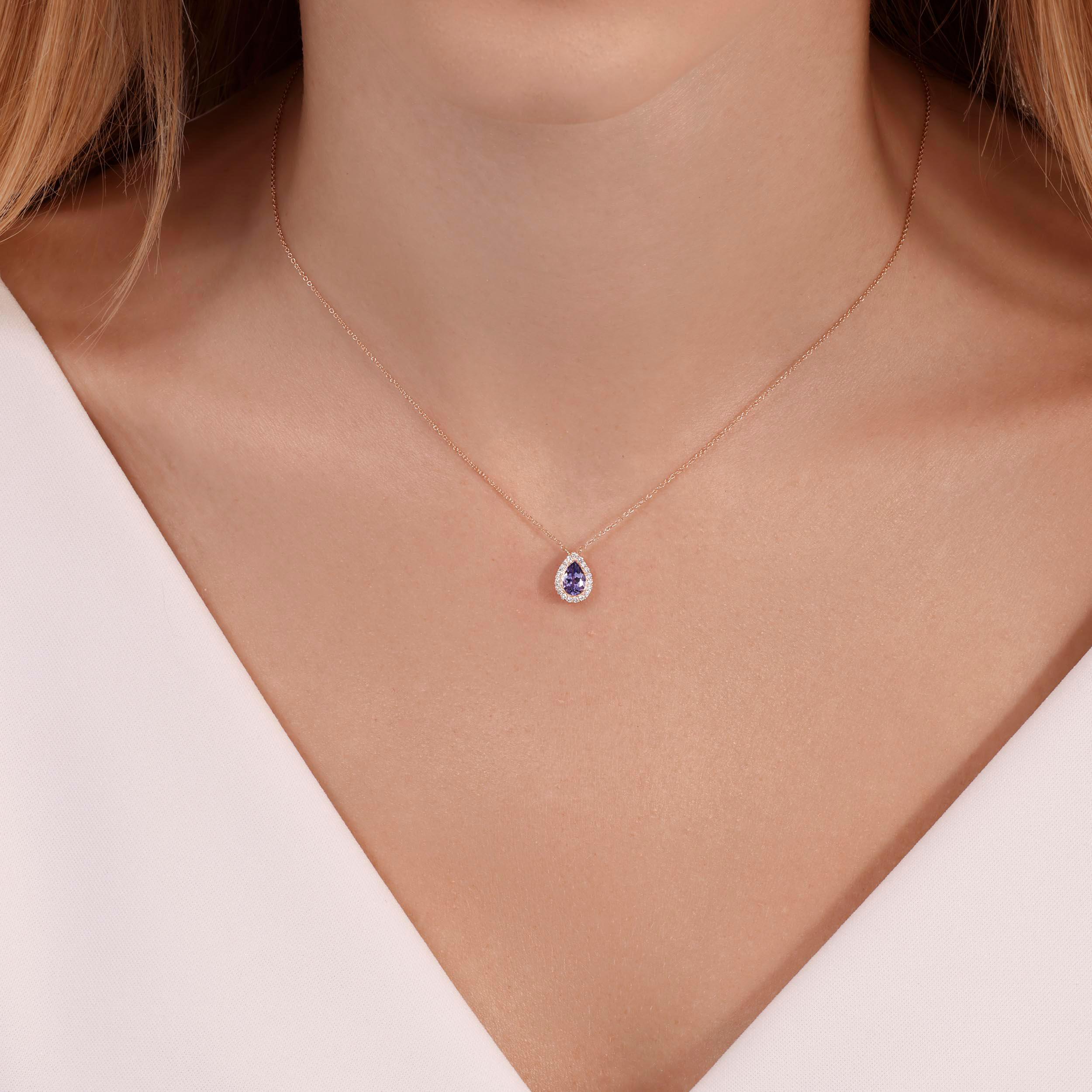 תליון טנזניט בצורת טיפה עם אבנים מסביב – 0.10 קראט 💎