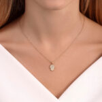 תליון עם ארבע אבנים בצורת טיפה, אמייל לבן, ושיבוץ פאבה מסביב – 0.46 קראט 💎