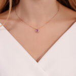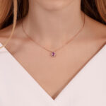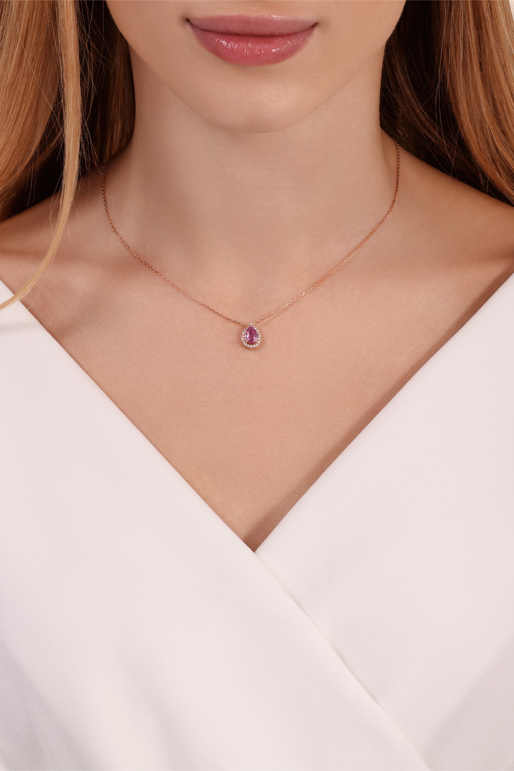 תליון ספיר ורוד בצורת טיפה עם יהלומים מסביב – 0.10 קראט 💎