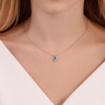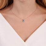 תליון ספיר ורוד בצורת טיפה עם יהלומים מסביב – 0.10 קראט 💎