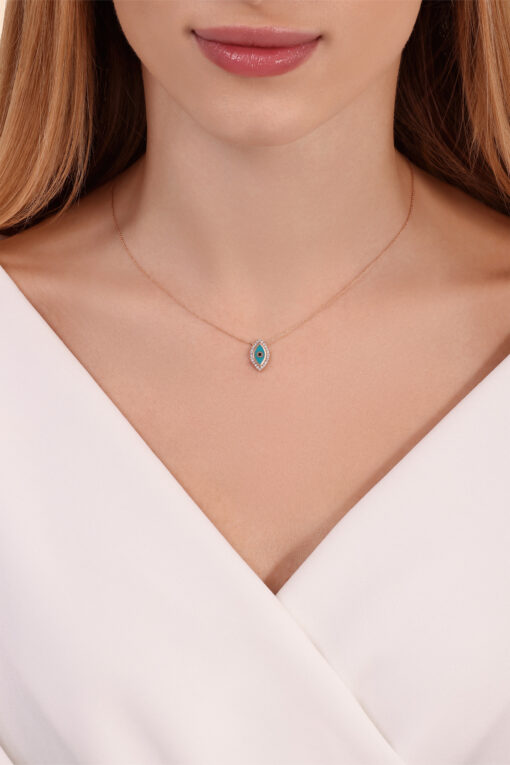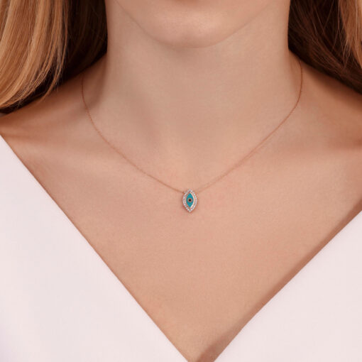 תליון עין אמייל עם שיבוץ יהלומים מסביב – 0.14 קראט 💎