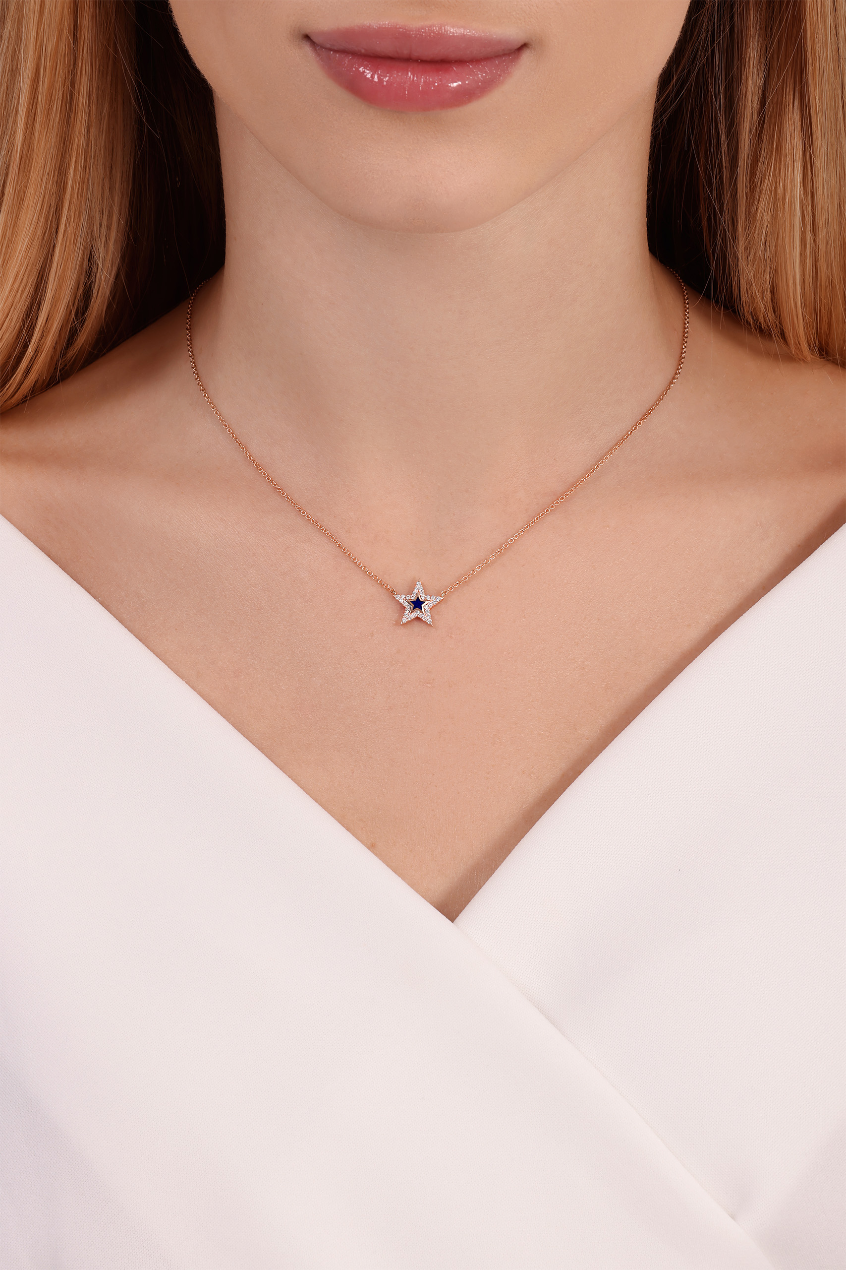 תליון כוכב אמייל משובץ יהלומים מסביב – 0.17 קראט 💎