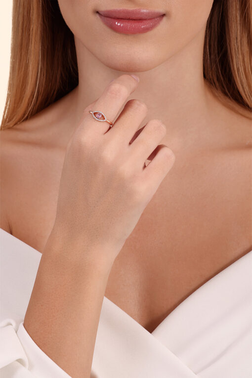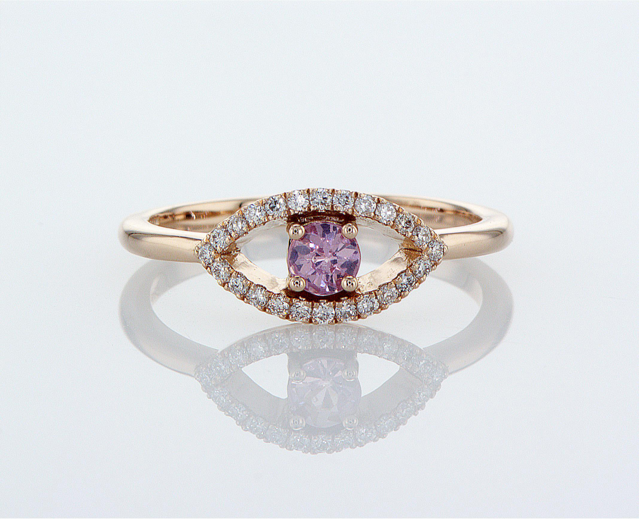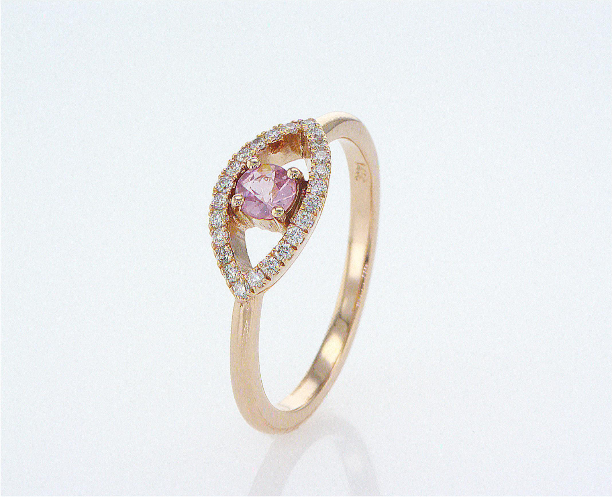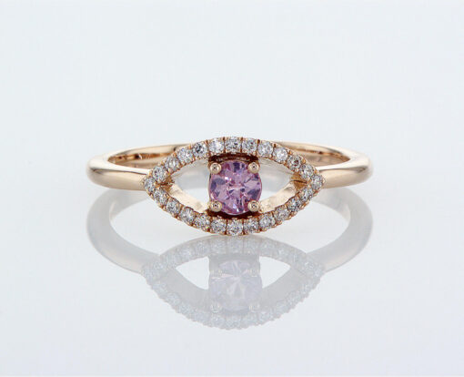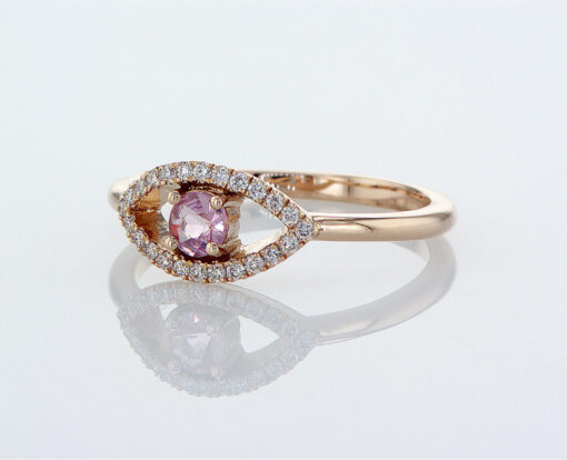 טבעת עין עם ספיר ורוד משובצת יהלומים – 0.14 קראט 💎