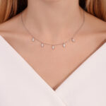 תליון עם ארבע אבנים בצורת טיפה, אמייל לבן, ושיבוץ פאבה מסביב – 0.46 קראט 💎