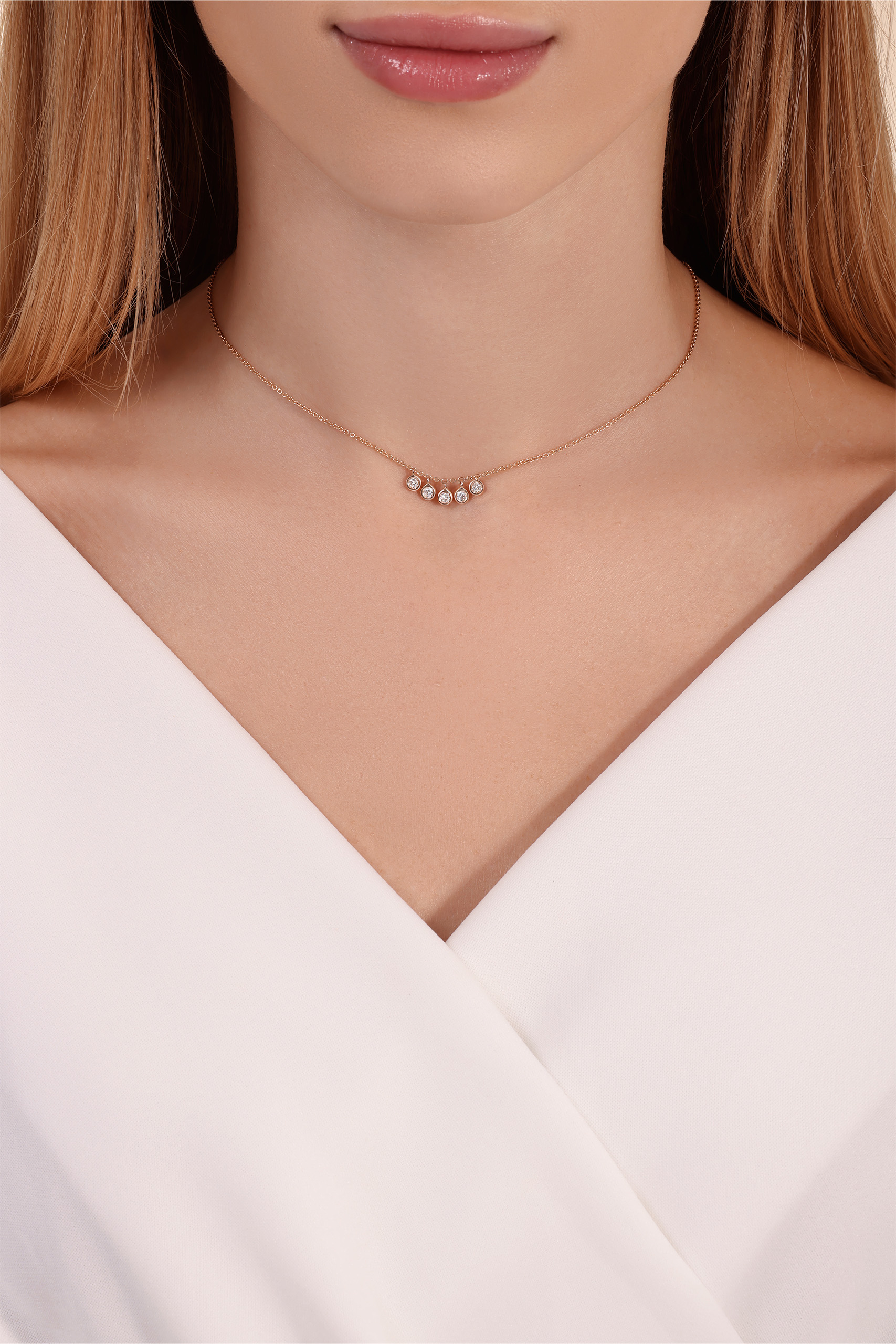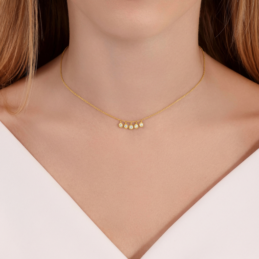 תליון עם 5 יהלומים עגולים צמודים בשיבוץ בית (בזל) – 0.26 קראט 💎