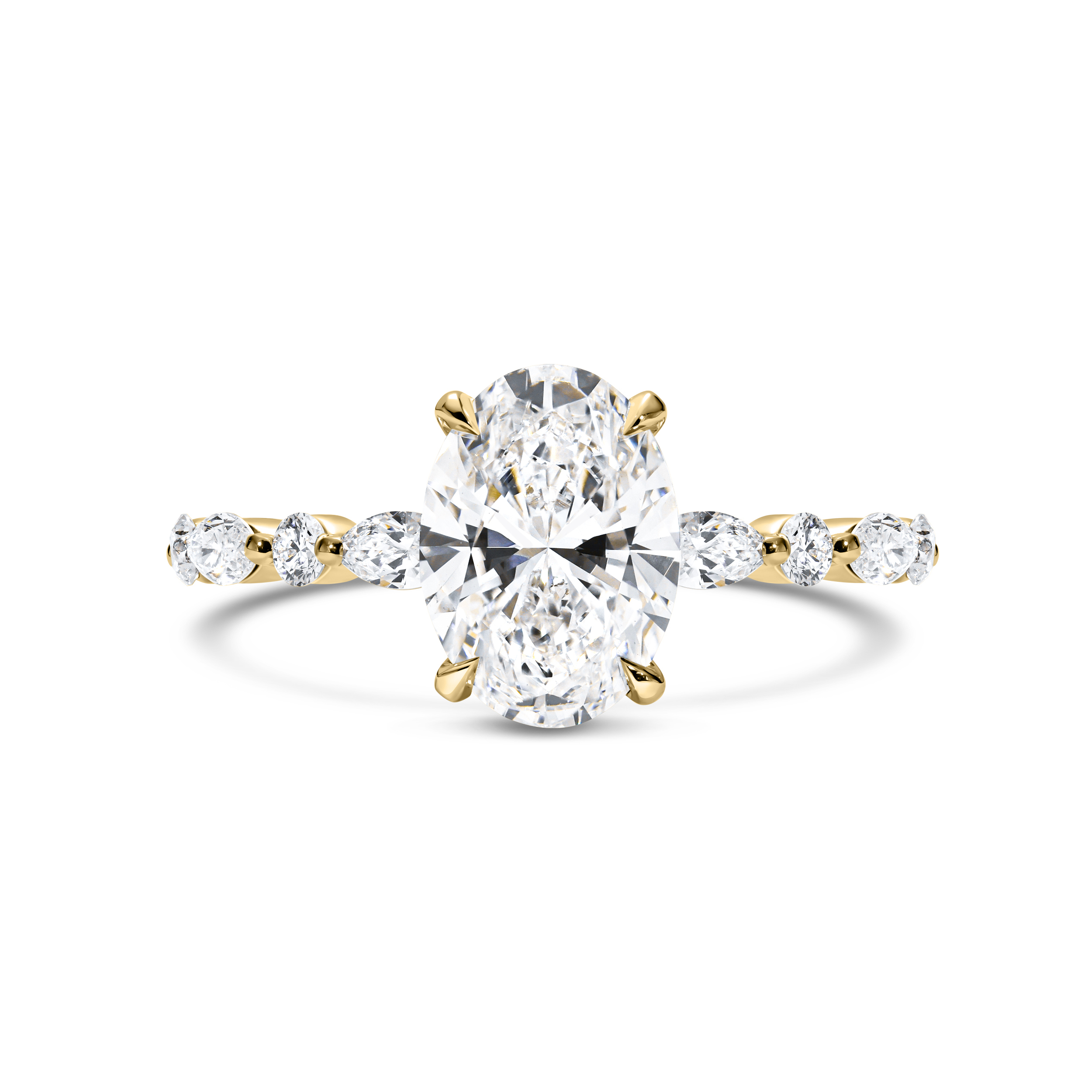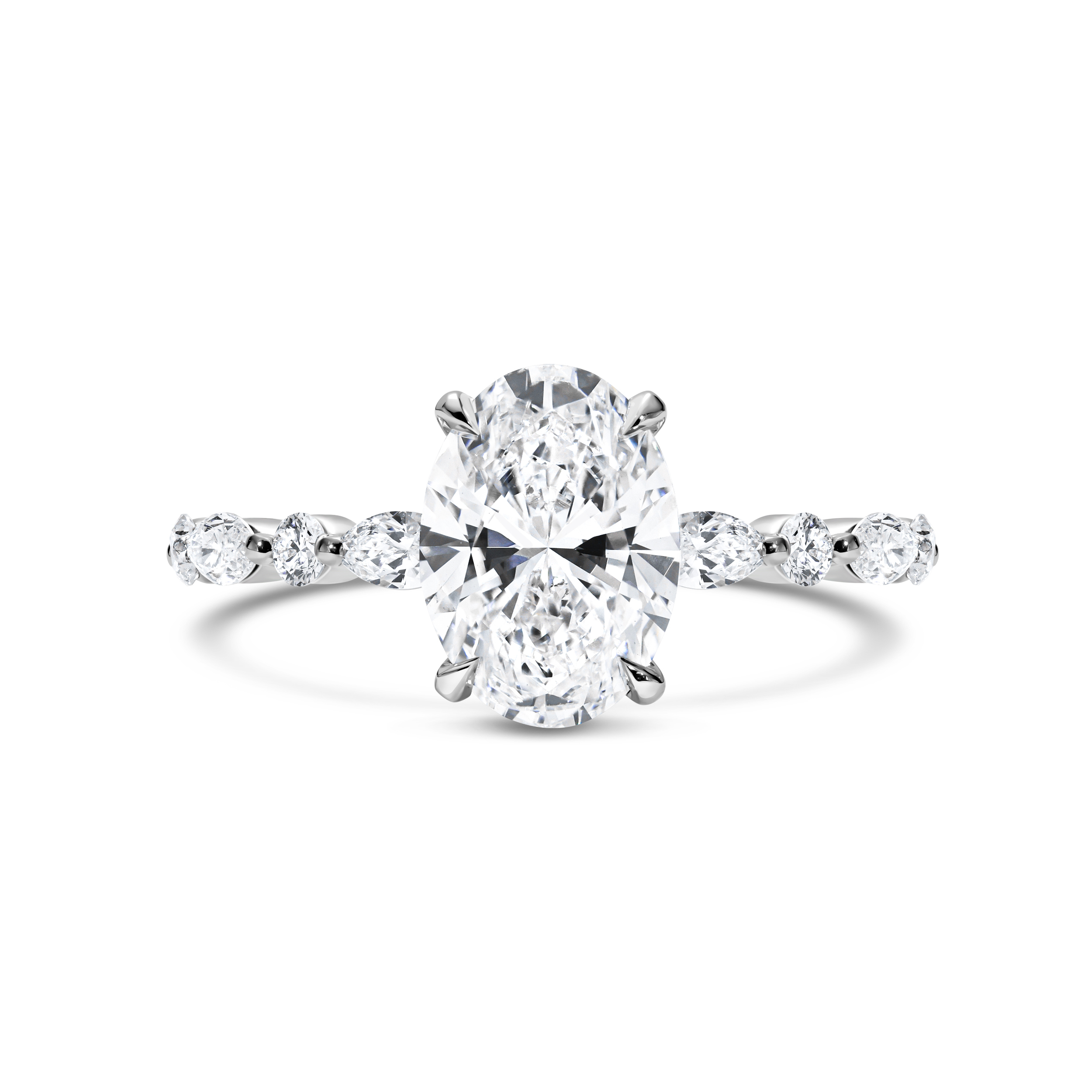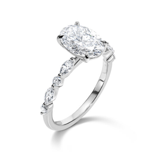 טבעת עם יהלום אובל מרכזי ויהלומים עגולים ומרקיזות – 2.40 קראט 💎