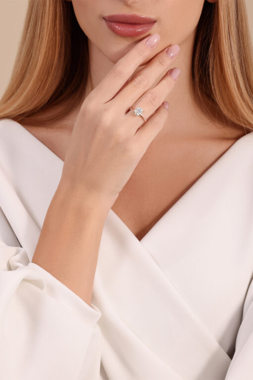 טבעת יהלום מרכזי עגול משובצת יהלומים בכתר – 1.50 קראט 💎
