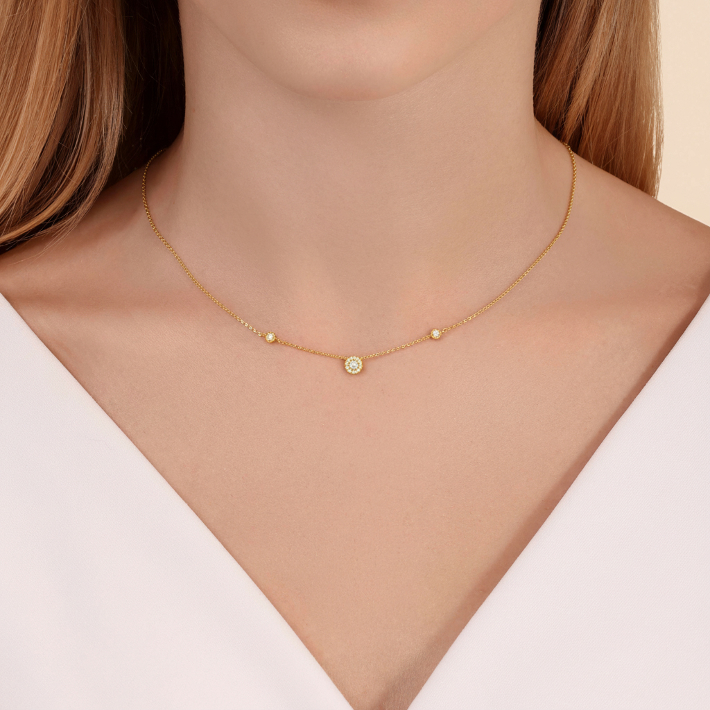 תליון שלושה עיגולים עם שיבוץ שורה מרכזית מסביב – 0.12 קראט 💎