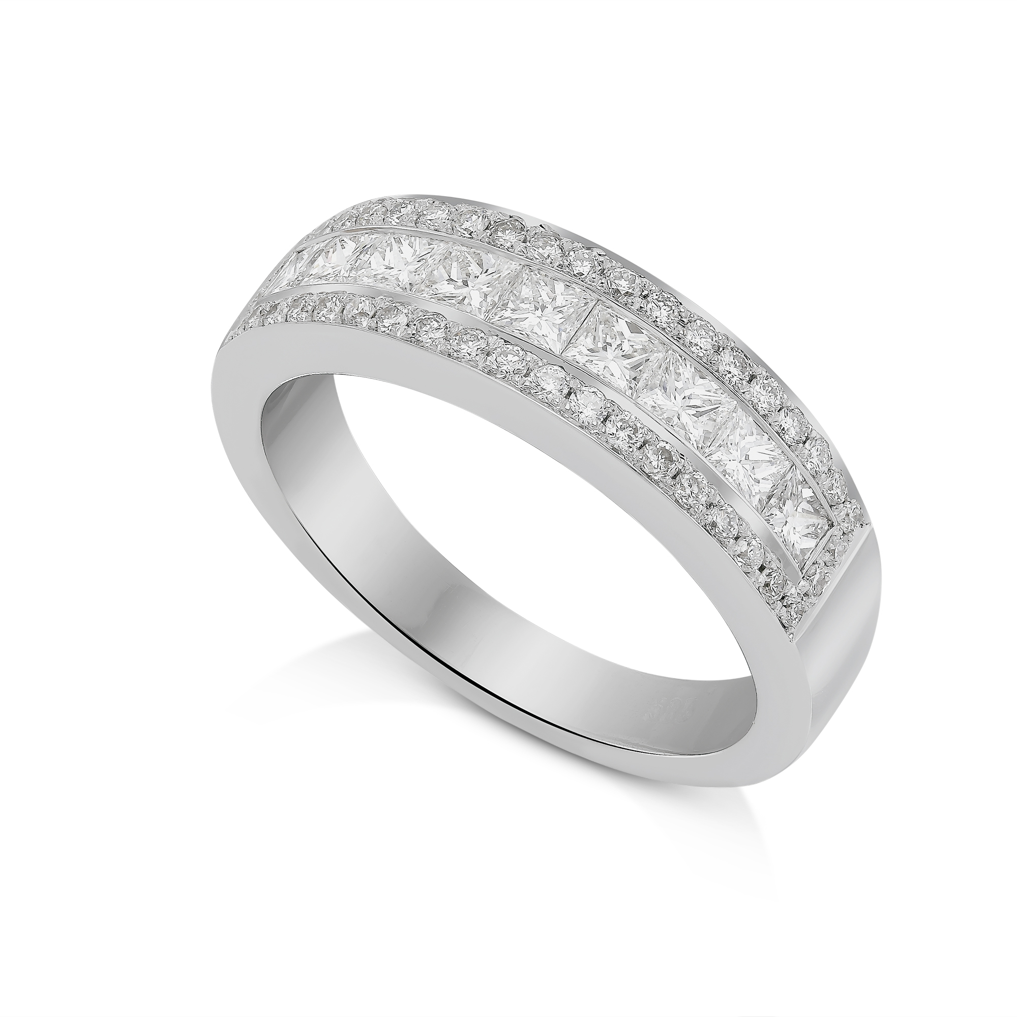טבעת שלוש שורות יהלומי פרינסס במרכז – 1.25 קראט 💎