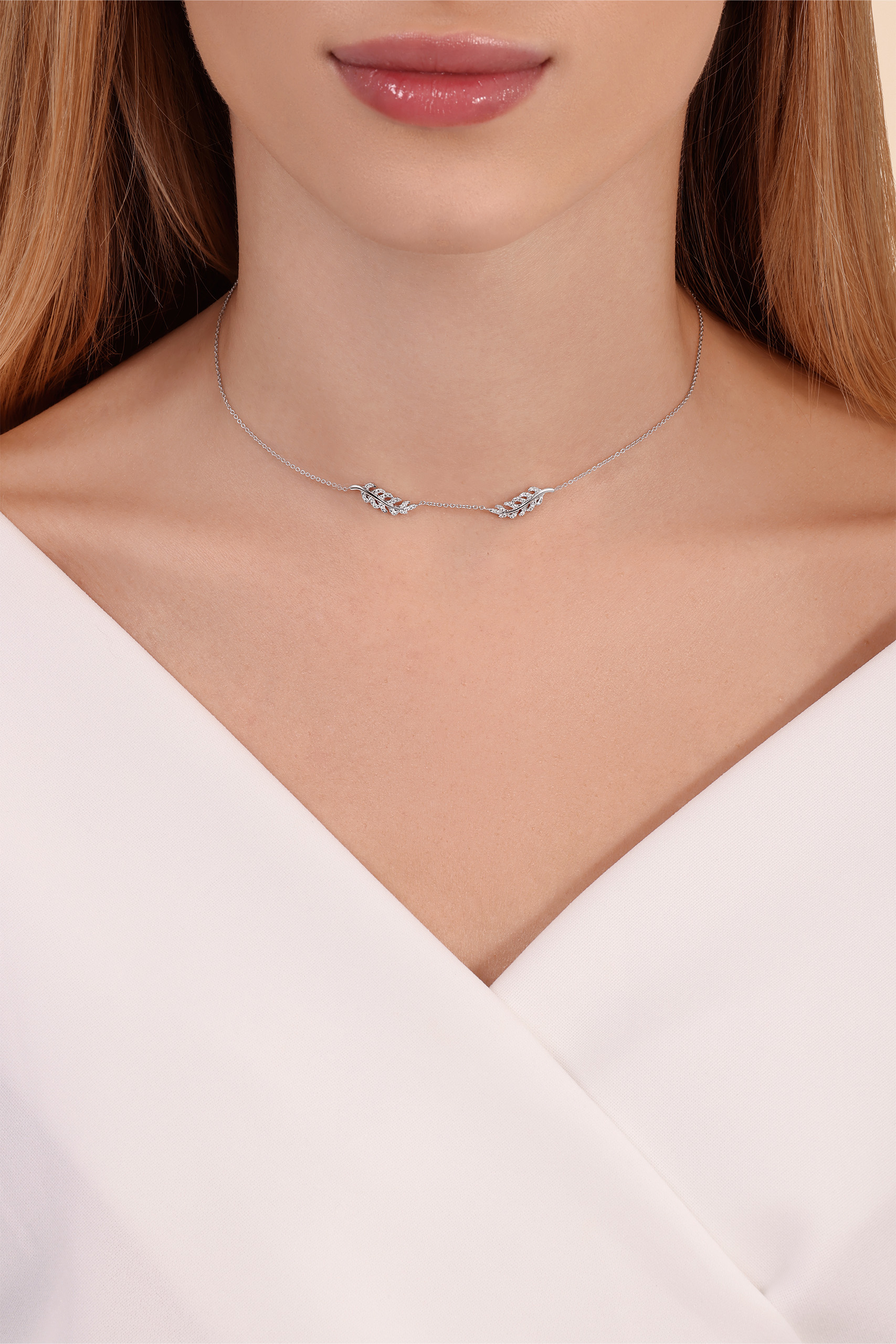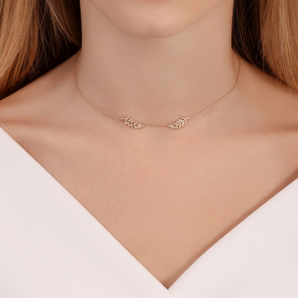 תליון עלה מזהב לבן עם יהלומים שחורים – 0.20 קראט 💎