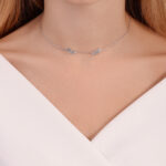 תליון עם ארבע אבנים בצורת טיפה, אמייל לבן, ושיבוץ פאבה מסביב – 0.46 קראט 💎